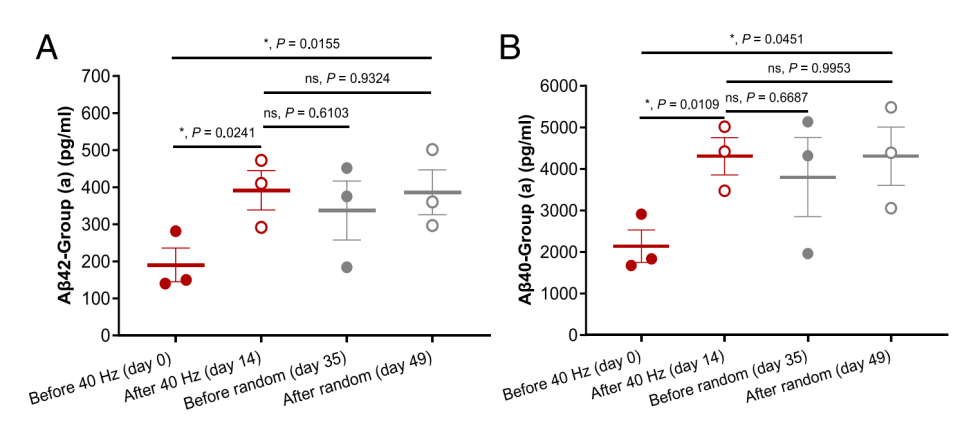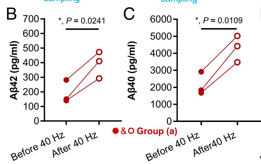 听完40Hz声音后,猴子脑脊液里的Aβ垃圾(Aβ42和Aβ40)提高了200%以上