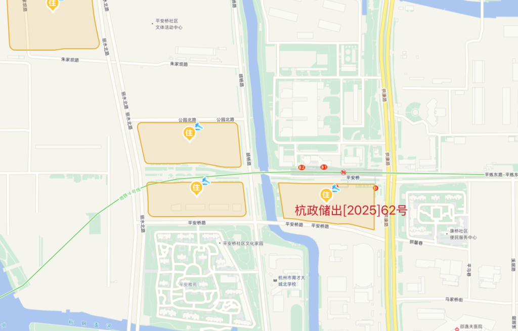 地块信息显示,杭政储出[2025]62号地块即拱墅区康桥单元GS120201-07地块,东至拱康路,南至平安桥路,西至平安桥河永華证券,北至平炼路。地块的出让面积为26351平方米,出让建筑面积为57972.2平方米,起始价97933万元,折合起始楼面价为16893元/平方米。地块用途为住宅(设配套公建)用地。